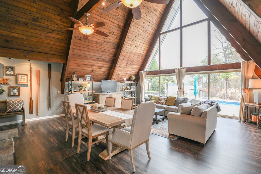 Welcome to this beautifully updated lakefront A-frame retreat, where modern design meets natural tranquility. This FEE SIMPLE property is nestled on the shores of Lake Sinclair in north Baldwin County. This stunning home features expansive windows that showcase breathtaking water views from every room. With 3 bedrooms, 2 bathrooms on the main level, and a cozy loft bedroom suite, this A-frame home is designed for both comfort and style. The open-concept living space has beautiful tongue and groove vaulted ceilings and the updated kitchen is appointed with stainless steel appliances including double oven and a gas cooktop. The bright white cabinets provide abundant storage and are topped with beautiful quartz countertops. The additional family room/lodge is the perfect space to create all of those special family memories whether watching movies or the big game or playing some ping pong or your favorite board games. Step outside to the spacious patio, ideal for entertaining or simply relaxing while taking in the amazing lake views. The outdoor space is complete with a sparkling pool, surrounded by thoughtful landscaping for ultimate privacy and enjoyment. Experience year-round lakefront living with easy access to water activities. This move-in ready home is perfect for family living, that special getaway or a great investment for a short term rental opportunity! Don't miss out on this if you are seeking a peaceful, modern retreat in an unbeatable location close to all the local stores, restaurants and amenities.This property has recently been approved for a single stall boathouse! Give me a call for your private showing today!