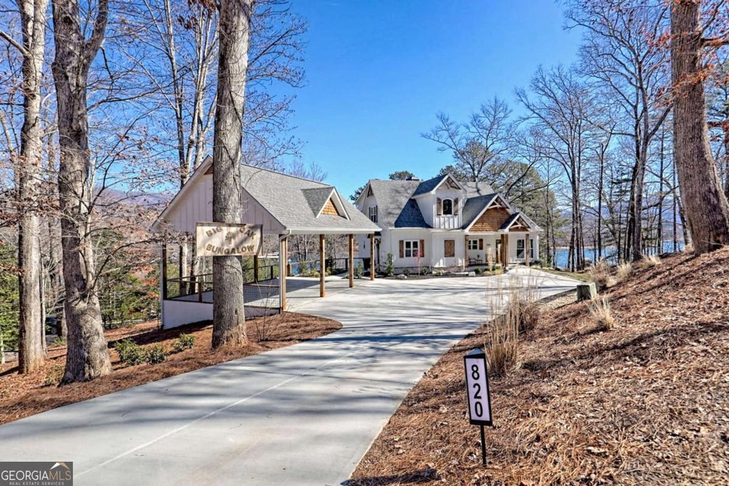 Experience the epitome of Lake Chatuge living in this 4-bedroom, 4.5 bath residence built in 2023. This stunning home boasts expansive lake and mountain views year-round. Offered fully furnished, the property is ready to enjoy the upcoming lake season. Upon entering, you're greeted by soaring whitewashed tongue-and-groove wood ceilings, abundant natural light and water views. The open-concept floor plan effortlessly connects the living, dining and kitchen areas. The kitchen is truly a chef's paradise, equipped with stainless steel appliances and a large island overlooking the living room. Expansive sliding glass doors showcase views while providing direct access to outdoor living space with a stone wood-burning fireplace and an inviting dining area. The main floor features a luxurious Primary Suite with 2 closets, double vanity, and a custom tile shower. A conveniently located mudroom, as well as a half bath complete the main level. Upstairs, you will find 2 bedrooms and a shared bath with double vanity and custom-tiled shower. The terrace level boasts impressive 10-foot ceilings, a cozy living space with a gas log fireplace, and space for fun and games as well as an additional guest suite and bunk room with full bath. The custom bunks are oversized full over full beds. Step through the terrace level's large sliding glass doors to discover your private oasis including a hot tub and a beautifully crafted stone pathway leading directly to the lake and stone patio with firepit. The deepwater double-decker dock has two boat slips, composite decking, and aluminum railings. The oversized carport provides plenty of parking and boat storage options. Discover the potential of this home as a primary residence or a lakefront retreat in the heart of Hiawassee. Many area attractions are just minutes away including Bell Mountain, GA Mountain Fairgrounds, hiking and biking trails as well as local wineries. Don't miss this rare, new construction home on Lake Chatuge.