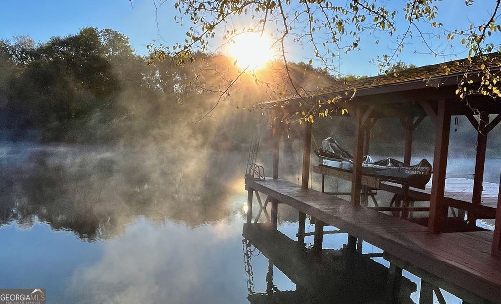 Big price reduction on two lots and potential 4 bedroom house. Fishermans paradise! A-Frame with master on main with private bath with large tile shower and view of the water and features a roomy walk in closet. Loft for third bedroom sleeping, 2nd bedroom and bath also on main floor, laundry room and half bath on main floor, unfinished partial basement could be additional bed and bath. Beautiful wood floors. Outside you will find a wrap around deck and grilling area, driveway to boat ramp at the water, single boathouse with lift and 6 feet of water depth at the dock. House is on two lots so home offers lots of privacy. Enjoy nature at it's best at this quiet home with good water on Lake Sinclair. Has a huge detached garage for holding a camper or workshop.New roof in 2023. TriCoGo (fiber) is available here.