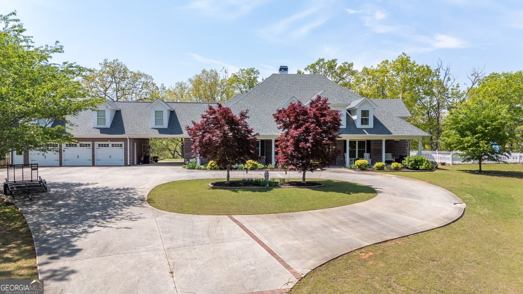 Be sure to view the video! Welcome to your dream retreat - a private, exclusive estate atop a scenic ridge, offering over 16 acres of wooded privacy, thoughtfully landscaped grounds, and a lifestyle of peace, comfort, and refined living. The four-sided brick traditional home is stately and welcoming, with a wide covered front porch, breezeway-connected three-car garage, and a separate workshop for your hobbies, tools, or future he-shed/she-shed. A 16x32 saltwater pool glistens beside the house, surrounded by lawn, lush perennials, blooming shrubs, and a garden spot; perfect for those who love to live and entertain outdoors. Inside, the home is a showcase of elegant design and effortless living. The main level offers total step-less entry and total main floor living; including an expansive master suite with double tray ceiling, luxurious spa-style bath (featuring a soaking tub, double vanities, and a multi-spray shower), and his and her walk-in closets. The two-story great room is grand yet cozy, framed by detailed crown molding throughout. The inviting and spacious eat-in kitchen boasts stainless steel appliances, a walk-in pantry, and a panoramic view of the pool and backyard. Also on the main floor: a formal dining room, a home office just off the foyer, a laundry room, and a screened back porch that will quickly become your favorite warm-weather haven for relaxation or entertaining. Upstairs, cherry flooring continues through the hallway and balcony, leading to two generously-sized bedrooms, a flex space perfect for a den, nursery, workout room, or second office, and even a charming wet bar/coffee nook. From here, step out onto the upper screened porch and take in sweeping views of your private paradise. Need more space? There is a huge unfinished bonus room above the garage (ideal for future finishing and storage). One more bonus is the separate shop, ideal for lawn equipment a private workshop or your he-shed/she-shed. Listed below appraisal value, this home is not just a place to live it's a lifestyle. If you've been searching for a private sanctuary where nature, comfort, and timeless design come together, your search ends here. Schedule your private tour today and fall in love with all this exceptional estate has to offer.
