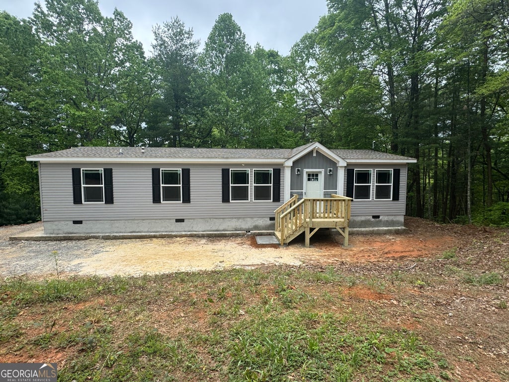 Welcome to your new 2025 home, a perfect blend of modern comfort and stylish design, 1,568 sq ft and nestled on just over an acre. Situated in the highly sought-after Gilmer High School district. Step inside to discover an inviting open floor plan that boasts 3 spacious bedrooms and 2 baths. The 30-year architectural shingle roof ensures durability and peace of mind, while the sleek, all-new stainless steel appliances add a touch of elegance to your daily life. The kitchen features a farmhouse sink and a central island. The Carrier heating and air system and Rheem Pro hot water heater guarantee year-round comfort. Vinyl flooring throughout with carpet in the bedrooms. The living room is a true showstopper with its rustic wood beams and a built-in entertainment center. Don't miss this incredible opportunity to own a beautiful new home that offers the perfect blend of comfort, style, and functionality, all in a prime location! *Owner/Agent* *Manufactured home (drywall/tile shower/higher end finishes) *Gravel Road- (part of Rogers Creek) *New will, permanent block foundation, home sits on a poured slab, private/wooded lot, several Mountain Views(seasonal), drywall, tile shower, wood style beams, 30 year shingle roof, vinyl siding, and more! Appraisal (desk) is well above asking price!