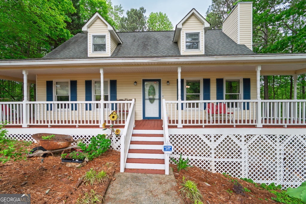 Charming Cape-Cod Retreat with Lake Views! Tucked away on a private cul-de-sac with no HOA, 125 Misty Lea Drive offers a tranquil blend of southern charm and peaceful lake views. This 3-bedroom, 2.5-bath home invites you to relax and enjoy nature from the sprawling wrap-around front porch or the beautifully landscaped front yard. Inside, hardwood and tile floors flow throughout the house. The recently remodeled eat-in kitchen features white cabinetry, sleek black gas appliances, slate countertops, a reclaimed wood backsplash, and a breakfast room that opens directly to a large wood deck-perfect for outdoor dining with serene lake views. The living room welcomes you with built-in surround sound and a cozy wood-burning fireplace with a custom-built mantle and gas starter for ultimate comfort. The main-level primary suite includes private access to the porch, a spacious walk-in closet, and an ensuite bathroom with a separate tub and shower. A half bath and laundry room complete the main floor. Upstairs, two additional bedrooms share a full bath with two large closets, offering ideal space for family or guests. The partially finished basement provides a bonus room and includes a gun safe that stays with the home. The two-car garage features a workbench and additional storage space. The fully fenced backyard is a private paradise with a shed, water feature, and vibrant flower beds. This home is move-in ready with a gas water heater, gas furnace, and security system, and it is prewired for a generator. Located just minutes from downtown Dallas, 125 Misty Lea Drive combines country peace with city convenience. Don't miss this opportunity to own a beautifully maintained home with stunning lake views and genuine Southern charm!