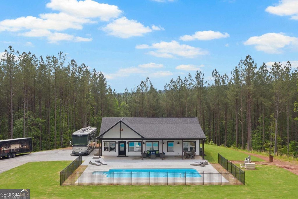 Gorgeous Ranch Home w/Pool on nearly 19-/+ acres!!! That needle in the haystack opportunity! Acreage & A newly built, cleanly designed 2 bed 2 bath home with a 3rd room option on stunning level ground. Walk out to your beautiful pool just in time for summer! 18.67-/+ acres of a private oasis with tons of frontage on noisy Tobacco Pouch Creek! Long meandering driveway tucks this gem neatly away. All the land around it has been similarly styled into larger estate tracts protecting it from future development. Your choice of additional homesites, barn sites, garage sites are in abundance. Room to roam & explore the existing trails on ATV or side by side as the land gently rolls to the creek. Take a stroll down to the water amongst the blooming mountain laurels & get your zen to the babbles of the flowing creek. The home being tastefully appointed & designed as more of a large, 1500-/+sqft couples or guest cottage/vacation house, offers open space, high ceilings, clean lines. It's positioned to be ready for expansion or a place to stay while in construction on a second dwelling. There is plenty of storage in the one car garage & new shed. New sod & mat clover are in place to fill the freshly graded level yard. Mulching has been done to open the views to the elegant creek bottom but more could be done to create fields for animals or anything desired. There is room to store any of your toys or equipment. RV parking & power hook ups available. The entrance is so hidden and private and the whole drive in is aesthetically pleasing. Location is king, being far enough out of town to capture the beautiful night skies & quiet natural surroundings but close enough for a quick errand. Extremely desirable area of Lumpkin being how it is developed in similar styles to this. Proximity to National Forest, orchards, wineries, venues, attractions, & everything North Georgia but only 15 minutes to 400. The best of all the worlds. Don't miss out, call today. Sellers ask for appointment before anyone comes down the driveway please.