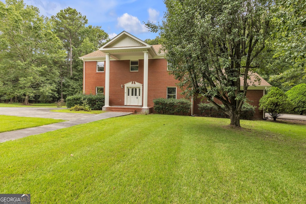 A Serene Escape! Nestled within a tranquil private community, this exquisite classic traditional two-story brick is a true emblem of timeless design and solid craftsmanship. Built in 1989, this residence boasts a solid foundation, providing a clean slate for your imaginative updates. Set on breathtaking 6.32-acres with private community lake frontage, this home offers an enchanting blend of seclusion and natural beauty. The stunning and private setting creates a serene atmosphere, perfect for those seeking a peaceful retreat from everyday life. Interior finishes include sand and stain wood floors, solid wood doors and trim. The classic kitchen is the heart of home and a breakfast area offers lake views. An inviting living room, adorned with a wood-burning fireplace, serves as a cozy gathering space and access to the rear patio. The separate family room flows into the dining area and ideal for entertaining. An office and a full bathroom complete the main level. Four generous bedrooms are located on the second floor. The primary bedroom is a true retreat, featuring his-and-her closets and a delightful Juliette balcony that overlooks the serene lake. One of the additional bedrooms also boasts a matching Juliette balcony and access to an oversized attic storage area. The exterior offers a 30x30 storage building with a concrete floor, perfect for boat, RV, or equipment storage. Don't miss this rare opportunity!
