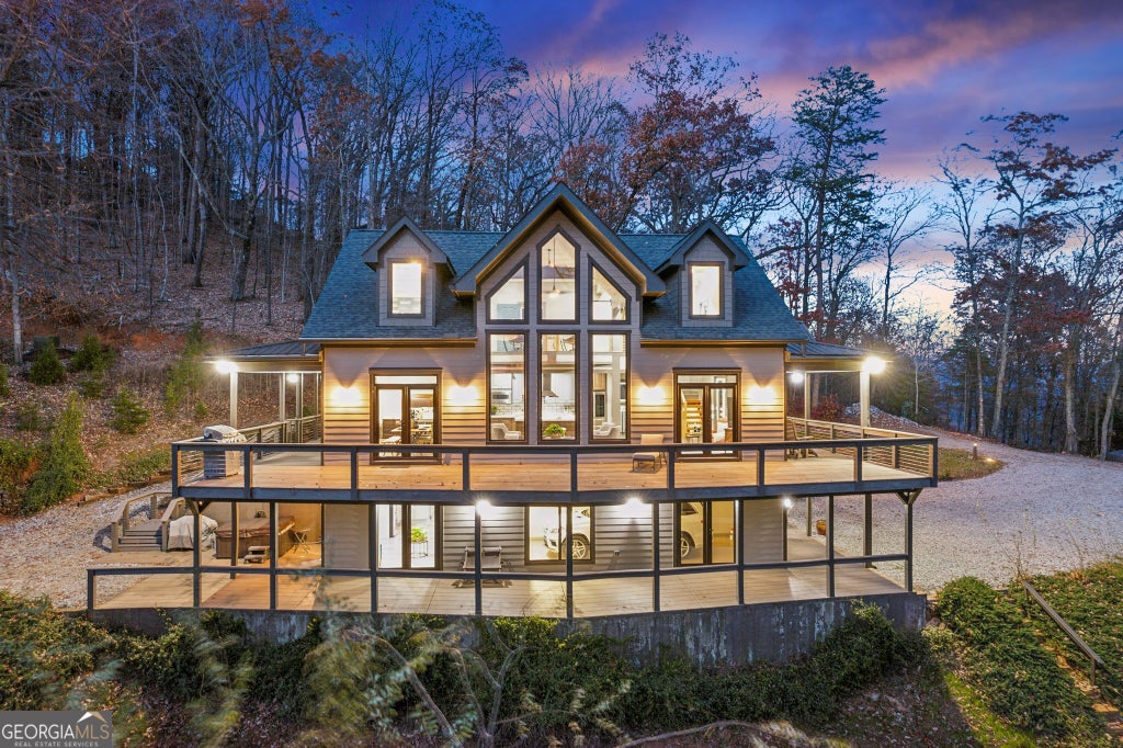 Welcome to 105 Yonah View, a handcrafted mountain retreat where exceptional design, natural beauty, and thoughtful craftsmanship come together in perfect harmony. Nestled on a quiet ridge just nine miles from downtown Dahlonega, this custom-built home offers the best of North Georgia living-total privacy, long-range views, and a level of finish rarely found in today's market. Construction began in 2017 and spanned two full years, with the owner personally involved in every decision, from selecting the perfect homesite and orientation to overseeing materials, finishes, and one-of-a-kind design elements throughout. The result is a home that feels grounded, timeless, and entirely unique. Step inside and you're immediately greeted by a soaring wall of glass that frames the ever-changing landscape-sunrises that break over distant hills and sunsets that paint the sky each evening. The open main level is anchored by a chef's kitchen featuring Thermador appliances, quartz countertops, a generous walk-in pantry, and a large island ideal for gathering. The vaulted living room is filled with natural light and offers exposed beams, shiplap walls, and a seamless connection to the wraparound deck just outside. The main-level primary suite is a private haven with direct access to the deck, a custom walk-in closet, and a spa-inspired bathroom with artisan fixtures, a hand-tiled shower, and signature sink designs created specifically for this home. Upstairs, a flexible loft offers space for a bunk room, media area, or creative studio-whatever suits your needs. On the terrace level, a bright and beautifully finished space with its own entrance provides ideal accommodations for guests, multi-generational living, or short-term rental potential. Just outside the lower-level doors, a hot tub awaits-perfect for relaxing under the stars. This home was made for both quiet moments and joyful gatherings, with a covered grilling porch, expansive deck space, and room to enjoy the peaceful beauty that surrounds it. Though it feels secluded, you're only minutes from Dahlonega's celebrated vineyards, white-water rafting on the Chestatee River, the historic town square, and the prestigious University of North Georgia. This property may be sold turn-key, with furnishings available under a separate bill of sale. Be sure to see the attached video to this listing.