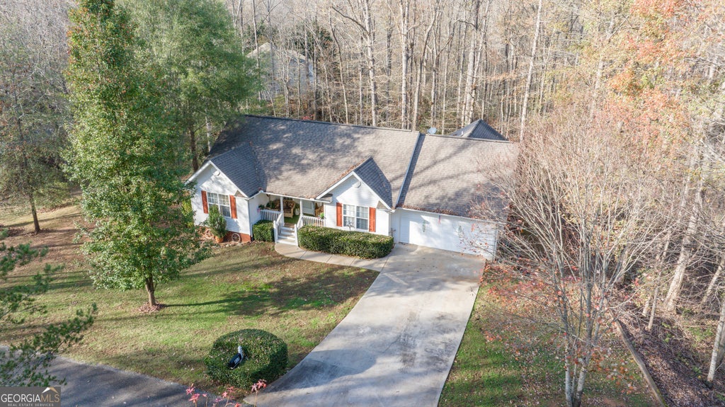 Welcome to this inviting 3-bedroom, 2 bath home freshly painted home offering the perfect blend of comfort and functionality. Nestled on a private 1+ acre lot, this home features a well-thought-out floor plan that makes everyday living a pleasure. As you enter, you'll be greeted by a large and open living room with stunning tongue-and-groove partially vaulted ceilings that enhance the spaciousness. The cozy fireplace adds a touch of warmth and ambiance to the room. The elegant dining room boasts trey ceilings, creating an ideal space for entertaining guests or enjoying family meals. The well-appointed guest rooms provide ample space for comfort, with a guest bathroom featuring tile flooring. The large master suite is a true retreat with a trey ceiling, hardwood floors, walk-in closets, and a beautifully designed ensuite bathroom. The kitchen is open to the living room and includes a breakfast nook, making it easy to stay connected with family and friends. For added convenience, the laundry room is located just off the kitchen, with easy access to the breezeway leading to the garage. Enjoy the outdoors year-round with a spacious sunroom (not included in heated sq ft) located just off the living room, perfect for relaxing and unwinding while overlooking the backyard. Step outside onto the back deck, where you can take in the serene, private backyard and wooded area while grilling your favorite meals. The front porch is a perfect spot to sit and enjoy the beauty of flowering plants and trees that surround the home. Additional features include a storage area beneath the sunroom and a quiet, peaceful location just minutes from town. Don't miss your chance to experience this lovely home with all its charm and potential. Schedule a tour today. OWNER FINANCING AVAILABLE.