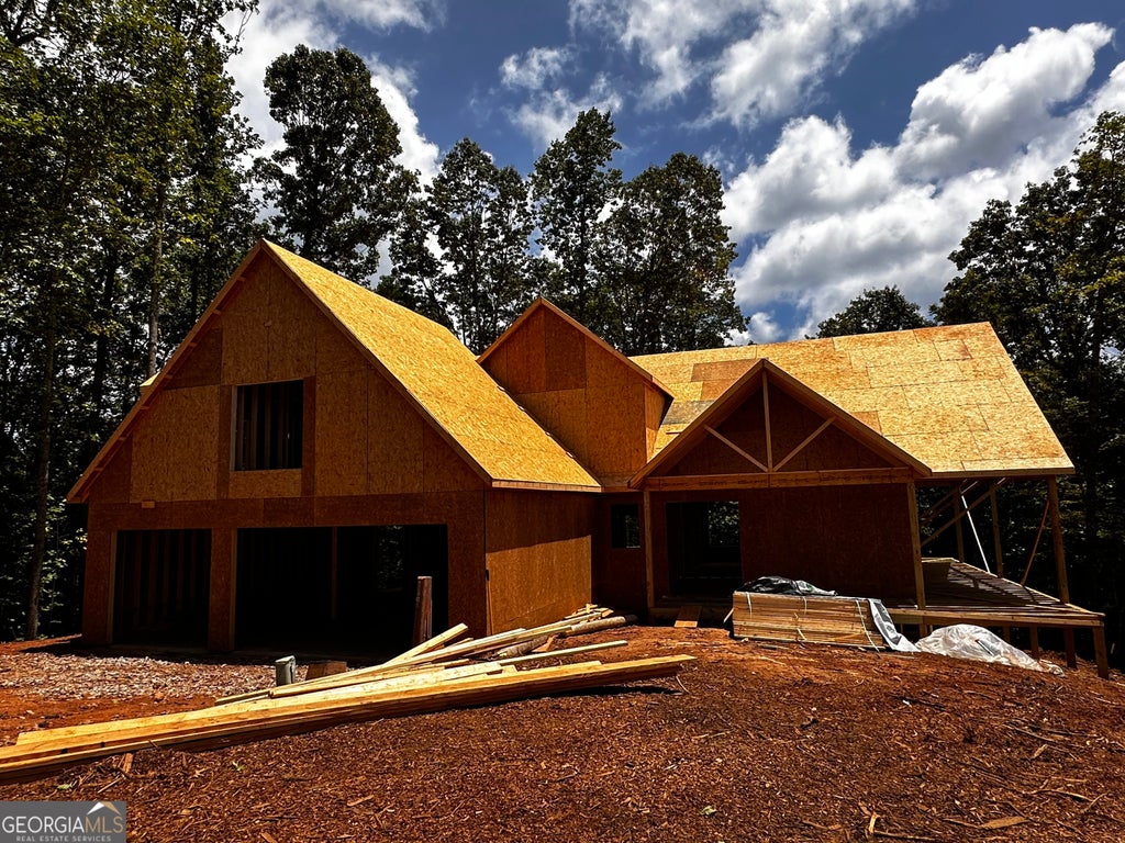 Beautiful custom home with views of Lake Burton and layered mountains.