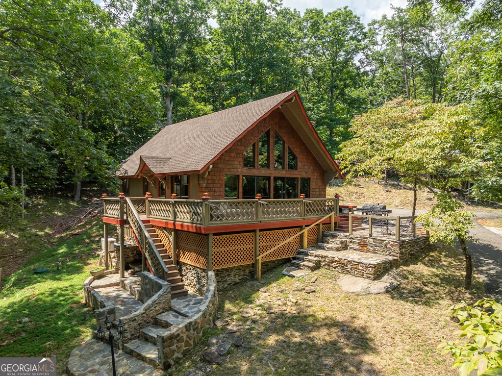 Welcome home to 771 Little Hendricks Mountain Rd! Up the paved driveway, you will feel invited to unwind and enjoy the serene surroundings and might even get a chance to meet Goldilocks and the three bears! This home is a quaint wooden shingled rustic style Chalet, located within the sought after community of Bent Tree. Home is adorned with stacked stone and flagstone paved walkways. Enjoy the fresh mountain air and long weekends in the hot tub, or on several stone paved outdoor seating areas wrap around porch a including a screened-in porch, and a wrap-around porch. Here you will be nestled in a private lot with mountain views, just over an acre with lots of room for entertainment or just listening to the birds. Cuddle up to a cozy fire on a crisp autumn night outside with the firepit or inside snuggled in front of the floor to ceiling stacked stone, wood burning fireplace. As you step inside you are greeted by the floor to ceiling windows and sliding doors allowing lots of natural light. Enjoy the open concept style of living, dining and kitchen space. The kitchen is fully functionable with lots of cabinets for dishes and extra appliances. Stainless steel appliances, granite countertops, and a gas stove. You will find warm, hardwood flooring throughout. Vaulted ceilings with exposed beams and upper wooden panels enhance a spacious feel to this charming abode. Other upgraded features are beautiful ship lap ceilings in some of the bedrooms and wooden barn-doors. The 3-bedroom, 2 full bath home is ready to move into as a full-time residence or can be used as a short-term rental, long term rental or a weekend vacation home. Two bedrooms are on the main floor with an additional bedroom upstairs. Both bathrooms are updated including a large, tiled shower and upstairs you have a Clawfoot soaking tub! Recent home improvements are a newly replaced roof and a completely new septic system. Outdoor enthusiasts and active individuals will love the gated golf cart community. Bent Tree boasts a plethora of resort style amenities including the 110 Acre Lake for Swimming, Fishing, Kayaking, and Boating. The Joe Lee Designed 18 Hole Golf Course and clubhouse and restaurant, 2 swimming pools, an Equestrian center with trail rides, hiking trails, indoor and outdoor tennis and pickleball courts, and of course a dog park for your furry companions. Bent tree even has a private Fire Department. You will also have access to some of the best health care from several nearby hospitals, be able to enjoy local Wineries, Breweries, Restaurants and shopping.