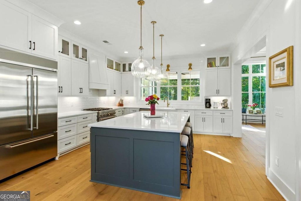 Welcome to the Chestatee Lake and Golf Community where this exquisite home at 9 Fieldstone harmonizes classic architecture with resort-style living in the heart of North Georgia's most coveted neighborhood. Nestled within a master-planned, lake-and-golf community, the home stands as a testament to custom design and thoughtful craftsmanship. This property is better than new, custom built sanctuary by Wolf Creek Homes exceeding all expectations from the moment you arrive. The stately curb appeal sets the tone- this is luxury made personal. Step inside through the beautifully stained wooden front door, framed by a covered, flagstone patio and discover a grand foyer with a formal dining room to your left and a private office to your right- both dining area and office feature French doors leading to the covered, front patio. Enter the living area and find a grand wall of windows, offering a stunning panorama of rolling golf fairways and lush landscape beyond. The open floor plan captivates at every turn, balanced effortlessly with intimate spaces for relaxation and celebration alike. The expansive living room is centered around a painted-brick fireplace and anchored by picture windows framing course views-the perfect setting for gatherings. Stunning wide planked White Oak floors and 10'- 12' ceilings throughout the home sets this home apart from the rest! The gourmet kitchen is an entertainer's delight! Perfect for hosting, the kitchen is appointed with top-tier appliances: 36" KitchenAid Dual Fuel Commercial slide in range, KitchenAid dishwasher, commercial grade refrigerator, and a sleek SHARP microwave drawer. Morning coffee or evening wine flows effortlessly thanks to the keeping area / breakfast room, a wet bar with beverage center, and a dedicated friends' entrance. The home's aesthetic is anchored by wide-plank white oak flooring and 10'-12' foot ceilings accented with shiplap-every detail thoughtfully refined. Outdoor living is equally stunning! Enjoy a covered, screened-in back porch leading down to the plush emerald zoysia grass back yard and dried-in flagstone patio with a large, outdoor fireplace overlooking the golf course. A full unfinished, daylight basement with matching, high ceilings to the main floor provides abundant storage or potential for future expansion. The garage includes durable, epoxy finished floors and accommodates two full sized vehicles and a golf cart. Live the resort lifestyle within Chestatee! Residents savor the finest in resort-style amenities daily-where weekends truly never end. Highlights include: award-winning 18-hole championship golf course designed by Denis Griffiths- set amid rolling hills and scenic mountain views, an elegant clubhouse offering fine dining and social gatherings, the Nightfire Lodge-ideal for community events, a Junior Olympic-size pool, children's splash area, playground, sports and bocce court, a lakeside pavilion with a grand stacked stone fireplace-perfect for gatherings or roasting marshmallows, a private marina with boat slips on Lake Lanier, plus miles of lakeside walking and biking trails, and a vibrant community square with bandstand- offering social events and pastoral charm. Step inside 9 Fieldstone and be wowed-from the front patio to the back porch, from sweeping views to intimate details. This is where craftsmanship meets lifestyle; where every day feels like a retreat.