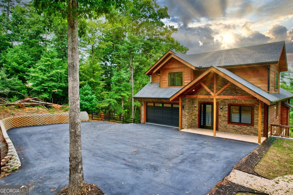 Brand-New 2024 Luxury Mountain Retreat in Gated Riverfront Resort. Perched on a private lot with stunning long-range mountain views, this newly built modern-rustic home is the perfect blend of elevated design and mountain charm. Located in the highly desirable Coosawattee River Resort in Ellijay, GA, this 4-bedroom, 5-bath masterpiece offers refined finishes throughout-real stone fireplaces, hickory wood floors, and a chef's kitchen with ZLINE appliances, waterfall quartz island, pot filler, wine fridge, and walk-in pantry. Enjoy spacious indoor-outdoor living with multiple bonus rooms, a fully finished terrace level, oversized garage, and covered balcony. Smart and energy-efficient, the home features foam insulation, whole-home audio, recirculating hot water, 500-gal buried propane tank, and a Ring security system. Coosawattee River Resort offers exceptional amenities including river access, pools (indoor and outdoor), pickleball, fitness center, clubhouse, tubing, and year-round events. Whether you're seeking a full-time residence, luxury getaway, or investment property-short-term rentals are permitted-this home offers it all in one of North Georgia's most vibrant mountain communities.