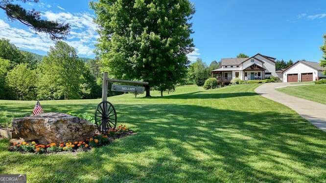 Rustic Farm Elegance Meets Modern Comfort in the Heart of Owltown! This immaculately maintained 4-bedroom, 3.5-bathroom craftsman farmhouse sits on 3.73 unrestricted acres in one of Blairsville's most sought-after areas. Blending rustic charm with modern sophistication, the home features high ceilings, hand-scraped hardwood floors, and quality craftsmanship throughout an open, airy floor plan ideal for everyday living and entertaining. The chef's kitchen is a showstopper with dual ovens, a gas range, stainless appliances, granite countertops, a custom tile backsplash, custom cabinetry, a large center island, and a dining area framed by abundant natural light. Offering flexibility and luxury, this home includes two owner's suites - the main-floor primary boasts a walk-in closet, garden tub, and a 6-foot tiled shower with dual shower heads, while the upstairs primary offers a walk-in closet, extra closet, double vanities, and another 6-foot dual-head tiled shower. A gorgeous loft overlooks the great room, perfect for a reading nook, office, or sitting area. The finished basement adds even more space with a flex room ideal for a home gym, media room, or guest accommodations. A wood-burning fireplace in the great room creates cozy warmth, while the second wood-burning fireplace on the covered back deck is perfect for entertaining or relaxing with breathtaking mountain views. Additional highlights include an oversized 27x27 attached garage, mudroom, and whole-house generator. Outside, enjoy covered porches, an outdoor fireplace, a butterfly garden, and a park-like setting surrounded by mountain scenery. Also included is a bonus 1.23-acre unrestricted property at 6151 Owltown Road, featuring a barn with bathroom, 3-car garage doors, pole barn, chicken coop, septic system, and water/power hookups - ideal for RV parking, a mini-farm, or a second home site. Combining rustic elegance and modern comfort, this property offers the ultimate mountain lifestyle!