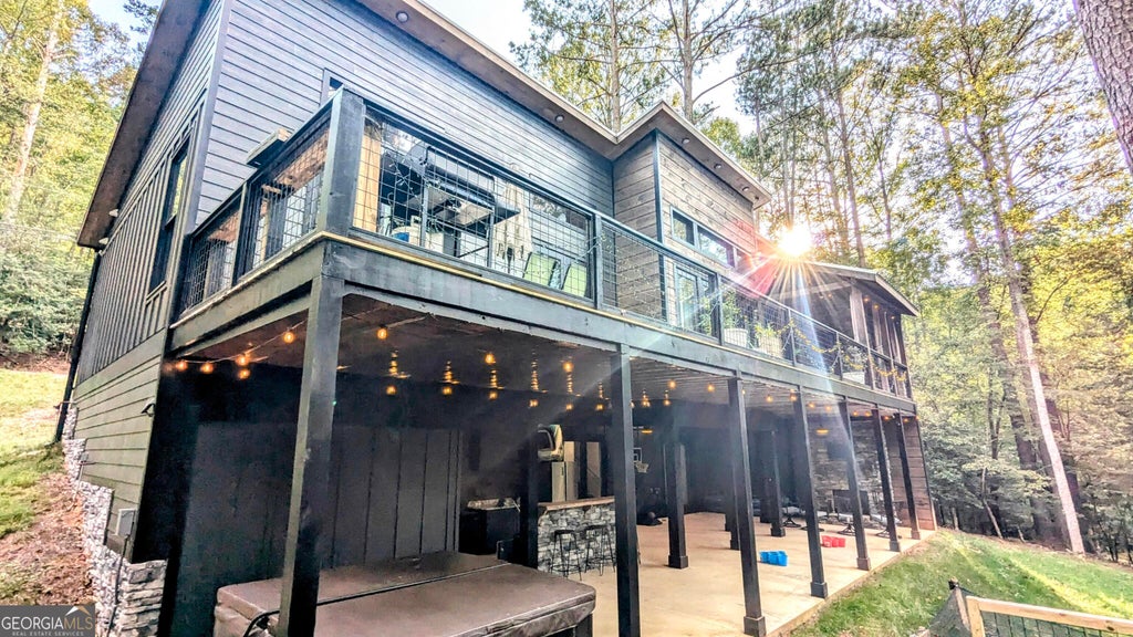 Welcome to this stunning 2023-built modern cabin offering 2,360 sq. ft. of luxury living space on 0.9 acres with 100 feet of private creek frontage. This 3-bedroom, 3-bath home blends rustic charm with modern finishes and was designed for comfort, entertaining, and investment potential. Step inside to find soaring all-wood stained ceilings, a warm mix of shiplap and drywall accents, and abundant natural light throughout. Every detail was carefully selected: oversized 8-foot doors, all-wood flooring, and all granite countertops with under-cabinet lighting. The open-concept design includes a game room, three cozy gas fireplaces, and large bathrooms-two bedrooms feature walk-in closets. The outdoor spaces are just as impressive, with massive upper and lower porches, a hot tub, an outdoor wet bar, and a fire pit-perfect for entertaining year-round. Additional features include: Board and batten Hardie board siding with a full metal roof Buried propane tank for clean aesthetics. Completely paved driveway for easy access All wood-lined ceilings and quality craftsmanship throughout This property is being offered fully furnished as a turnkey rental, and the seller is willing to provide rental performance data to serious buyers. Whether you're looking for a forever home, a private retreat, or a proven investment, this one-of-a-kind modern cabin is ready to deliver.