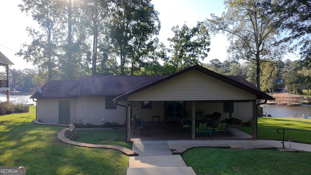 Discover this charming, move-in-ready 3-bedroom, 2-bath house nestled on a picturesque 1+ acre gently sloping lot with 126 feet of prime water frontage on beautiful LAKE SINCLAIR! Enjoy breathtaking views and effortless access to deep water from your private single-stall boathouse, complete with storage room. Recent updates include a new HVAC system (ductwork & all!) and a sturdy seawall, ensuring peace of mind and comfort. The spacious outdoor area features a large patio and a screened-in porch, perfect for entertaining or relaxing while taking in the serene lake views, as well as a huge, attached storage room with roll-up door, perfect for your lake toys, lawn equipment, holiday decor, etc. Inside, you'll find an additional versatile room that can be used as an office, sitting room, or hobby space. Located less than 1 mile from GA Hwy 441 and just minutes from Kroger and Publix, this home offers the perfect blend of peaceful lakeside living and convenient access to amenities. Don't miss the chance to own this beautiful lakefront retreat!