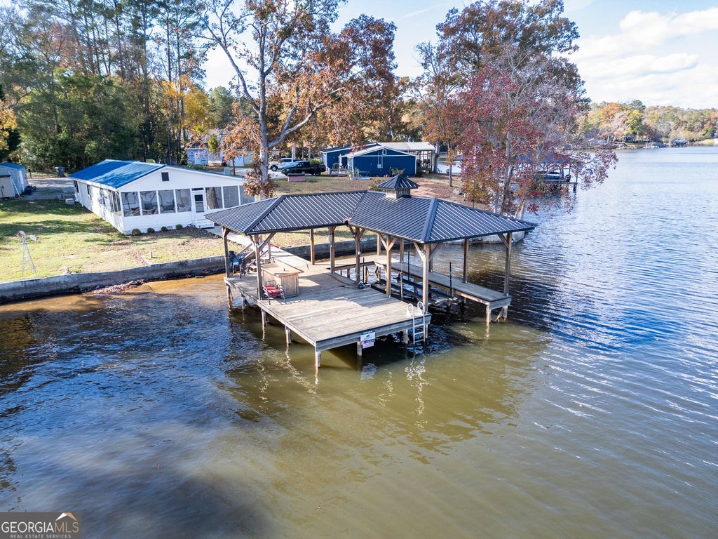 Welcome to Jackson Lake!!! GREAT, CONVENIENT LOCATATION! Rather you are looking for a permanent residence or a weekend lake house, this home is waiting for you to relax and enjoy waterfront living on approximately 100 feet of lake front property on your very own level DEEDED lot with breathtaking views of Jackson Lake? This property offers a NEWER covered boat dock with a boat lift ready and waiting for you and your boat! Relax or entertain in the shade on the covered dock or soak up some sun on the open dock. The water is approximately 8ft deep at the end of the dock, perfect for swimming or floating. Amazing views from the HUGE, FURNISHED screened in porch with removable clear polycarbonate inserts for year-round enjoyment. Home includes a new roof and new appliances. Washer, dryer, refrigerators and cameras are included as well as the gas logs in the fireplace (buried propane tank is owned, not leased and will convey) and all of the porch furniture. Also included is a NEW 10x20 storage building with a rollup door on one end and an entry door on the side, great for your lawnmower, yard tools, lake toys or whatever your need. NEW CARPET IN BEDROOMS & LIVING ROOM as well as some new interior paint! (Please note that the lake water was lowered when pictures were taken but is back up now)