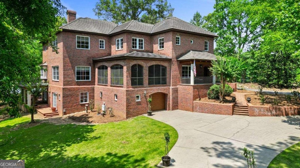The Pinnacle of Lakefront Living at Piedmont Lake Discover the very best of Piedmont Lake with this one-of-a-kind Callaway family custom 3-story Spanish Colonial estate, gracefully sited on a rare 5-acre double-lot peninsula. With manicured grounds and shoreline on three sides, nearly every window in this home offers sweeping lake views and radiant natural light. Crafted with timeless appeal, the home boasts 4-sided brick construction, elegant brick porches, arched walkways, expansive patios, a porte-cochere, and a serene screened porch. A paved 1/4-mile driveway encircles the property, perfect for lakeside walks through lush gardens and brick courtyards. Inside, classic Spanish Colonial features shine-wood ceiling beams, a cast stone fireplace, Rejuvenation lighting fixtures, and oversized Marvin windows and doors that blend indoor comfort with breathtaking outdoor beauty. The indoor pool and waterfalls, surrounded by flagstone decking and a built-in speaker system, invite year-round enjoyment with seamless access to an outdoor brick patio. The versatile lower level offers French doors opening to lakeside patios, direct garage access, and a semi-kitchen-ideal for generational living or guest quarters. Boating enthusiasts will love the private 15x45 slip with power, ready for cruising or fishing on the 220-acre private Piedmont Lake. True to the Callaway legacy, the estate features a remarkable 10-foot walled garden, spanning over 1,500 sq ft with multiple raised brick beds. Each bed is equipped with an individual irrigation system, drawing from lake water-keeping gardens lush and water bills low thanks to full lake water rights. Ideally located just 20 minutes from downtown Pine Mountain, with quick access to Callaway Gardens, The Wild Animal Safari, Columbus, LaGrange, and the Harris County Regional Airport. Only 70 minutes to Hartsfield-Jackson Atlanta International Airport.