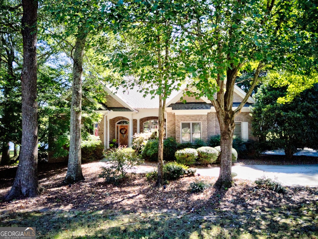 A rare lakeside retreat on coveted Lake Walton! Set on 3.07 beautifully wooded acres with over 350 feet of shoreline, this custom-built brick ranch combines timeless elegance with resort-style living. From the sweeping lawn and tree-lined entry to the breathtaking water views, every element of this home invites peace, privacy, and connection with nature. The grand two-story foyer welcomes you to a formal dining room ideal for entertaining and a soaring great room where a dramatic wall of windows frames the lake. Architectural details abound, with 10'+ ceilings, extensive molding, and a double-sided fireplace with custom built-ins that warm both the great room and the keeping room. The chef's kitchen features granite countertops, stainless appliances, pantry and an adjoining breakfast area designed for casual gatherings. The main level hosts three bedrooms plus a private office that can serve as a fourth. The primary suite is a retreat of its own, highlighted a wall of windows with double french doors opening to the full-length deck with serene waterfront views. The primary suite also offers a spa-like bath with large soaking tub and separate shower, double vanities and huge walk-in closet. A large laundry room on the main adds everyday convenience. Upstairs, a spacious loft and oversized bonus room provide flexible living areas ideal for guests, recreation, or hobbies. Outdoor living is a centerpiece here: the expansive deck and shaded pergola create multiple seating and dining areas, while the gently sloping backyard opens to the wide waterfront - perfect for kayaking, fishing, or simply enjoying the view. Community amenities add to the lifestyle with a pool, tennis courts, clubhouse, community dock and a lakeside pavilion. This home blends craftsmanship, comfort, and natural beauty into one extraordinary opportunity - a private retreat designed for both relaxation and celebration on the water.