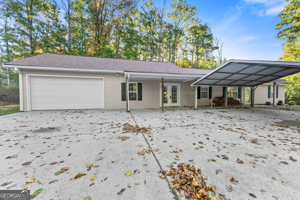 Welcome home to this beautifully maintained, spacious ranch nestled in a quiet, established neighborhood that offers the perfect blend of seclusion and convenience. Ideally situated just minutes from Dahlonega, Gainesville, and Dawsonville, this charming home provides a serene lifestyle without sacrificing accessibility. Set on over an acre of open, usable land framed by mature trees, the sunny lot offers abundant space for gardening, pets, entertaining, or simply enjoying the outdoors. Inside, you'll find a thoughtfully designed single-level layout with a split-bedroom floor plan and genuine hardwood floors throughout, combining warmth, character, and practicality. The inviting living room greets guests with a real stone wood-burning fireplace, creating a cozy centerpiece just off the formal dining area. The galley-style kitchen is both functional and charming, features SS appliances, featuring an oversized walk-in pantry and a convenient laundry area that flows seamlessly into a generously sized second living room-perfect for gatherings, relaxing, or entertaining. This versatile space features two heat sources: a wood-burning stove and an additional fireplace, offering both ambiance and flexibility. Additional highlights include: Two-car garage with a hidden built-in storm shelter/safe room. Covered parking at the front entrance and outside storage building. Abundant indoor and outdoor living space. Quiet, natural surroundings that feel remote yet remain highly accessible. Whether you're looking for peace and privacy, room to grow, or a forever home close to nature and community, this exceptional property checks all the boxes. Schedule your tour today and discover the unmatched comfort and charm this home has to offer.