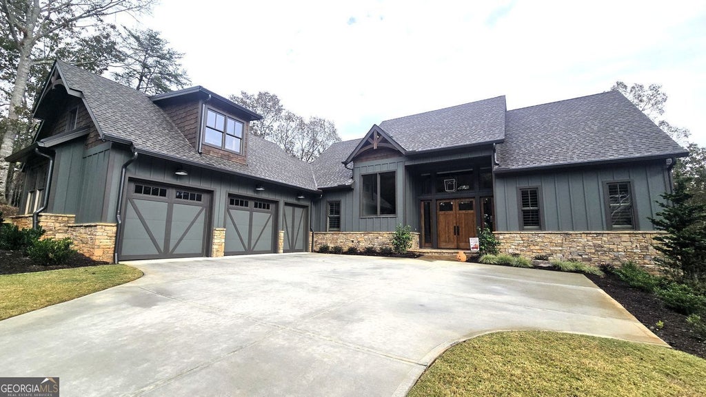 Photos/Video coming Wed., Oct. 29! Welcome to this exquisite 2024 custom-built mountain retreat by Mountain Oak Quality Homes, perfectly situated on .88 acres overlooking the serene beauty of the Achasta golf course and seasonal river views. With 3,546 square feet of refined living space, board and batten and stone exterior, this 4-bedroom, 4.5-bath home masterfully blends mountain charm with modern luxury. Step inside and be greeted by 16-foot ceilings with striking wood beams, creating a grand yet inviting ambiance. The open-concept living area is ideal for entertaining, complemented by built-in stone fireplace, bookshelves, and surround sound in the great room, and a gourmet kitchen featuring custom pull-outs for spices and utensils, a dedicated cutting board cabinet, walk-in pantry, and premium finishes throughout. The primary suite on the main level is a true sanctuary, showcasing a tongue-and-groove ceiling, custom built-in dressers, and a luxurious spa-style bath. An elegant office with built-ins offers the perfect space for productivity, and conveniently located near the kitchen and laundry room, which features built-in cabinetry and custom tile. Throughout the home, engineered hardwood floors (7" to 3" alternating widths) and custom details reflect superior craftsmanship and design. Enjoy seamless indoor-outdoor living with a screened porch featuring a tongue-and-groove ceiling, Trex decking, outdoor speakers, and a grill with gas line hookup-perfect for year-round entertaining. The fenced yard, whole-house generator, and irrigation system ensure comfort, peace of mind, and landscape beauty. The fully finished terrace level offers 3 bedrooms, 2 full baths with custom tile and fixtures, extra game-day kitchenette, exercise room, and lower porch wired for a hot tub (220V/50 amp), ideal for relaxation or hosting guests. Experience the pinnacle of mountain living-where luxury, comfort, and natural beauty come together in perfect harmony.