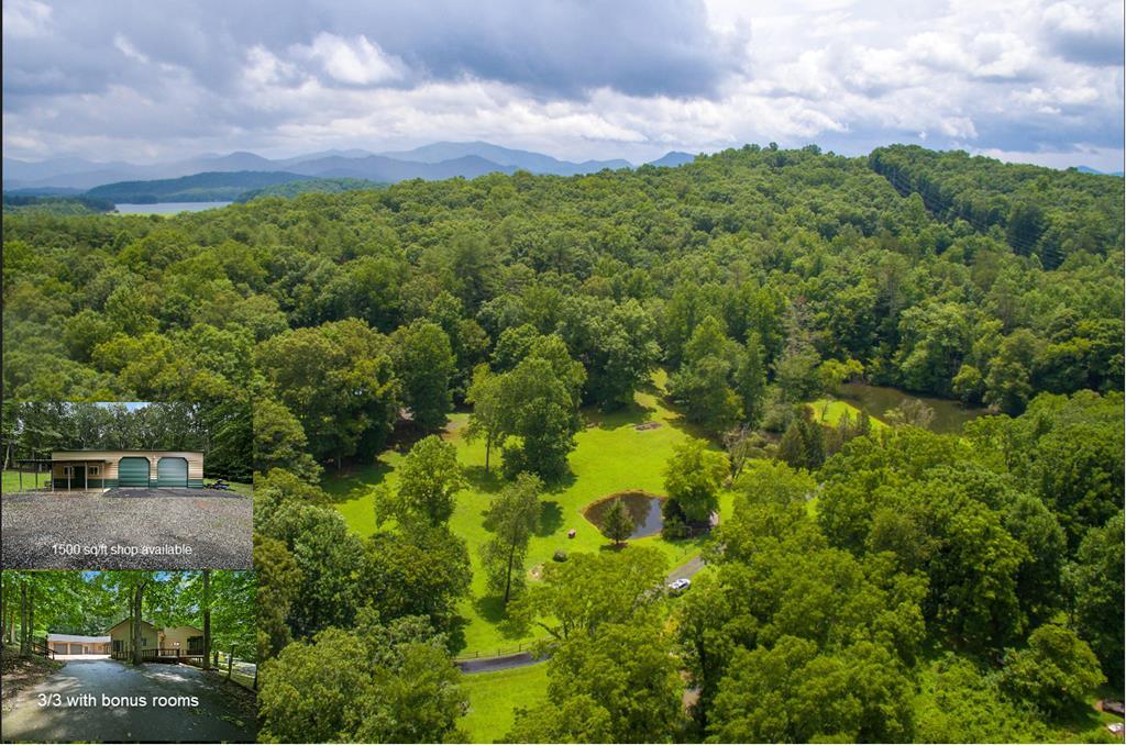 New land home package deal. Price increase includes a large home, situated in a park-like setting on just under 7 acres with a pond. There is a 1500 sq/ft garage with mini split, finished office and laundry with half bath and storage. This is a craftsman home, all one level, it is rustic but elegant, with the main living room, kitchen, and dining area as one, there are 3 bedrooms, spaced out for privacy, 3 full baths, an office, a bonus room as well as a second great room with wet bar and fireplace, great for entertaining. There is an oversized 2 car garage, laundry room setup with pet station, full length screened porch with outdoor fireplace, a nice area fenced for pets, as well as an additional small lawn & garden shop in the back. This is an excellent location being just a few miles out of Hayesville, just a couple miles to Chatuge Shores Golf Course, Chatuge Dam, and less than a mile from Clay County Rec Park and Gibson Cove, which has walking trails, camping, pavilions and an excellent boat ramp to enjoy the beautiful lake Chatuge. The pictures do not do this property justice, this is a great price on this property, make your appointment to see this beautiful place in person.