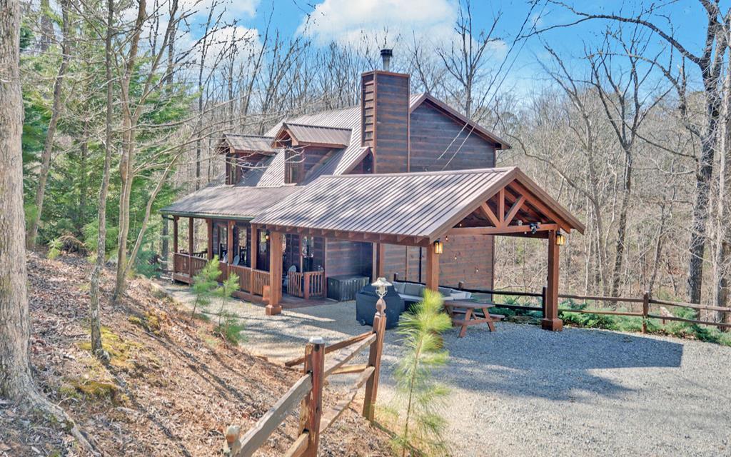 Discover Rustic Elegance in the Heart of North Georgia. Nestled at the end of a serene road amid the lush North Georgia Mountains, this private and picturesque cabin is a true gem. Spanning over 1.18 acres across two lots, this property is everything you desire for a tranquil getaway, a primary residence, or a lucrative short-term rental. This beautifully crafted cabin boasts four bedrooms and three baths, showcasing a perfect blend of rustic charm and modern comfort. The distinctive log-siding exterior with a metal roof exudes a timeless country-rustic appeal. As you step inside, the great room greets you with its impressive cathedral ceiling and a striking floor-to-ceiling rock fireplace. The warm wood flooring extends throughout, offering a cozy yet elegant ambiance. The kitchen features stainless steel appliances, convenient bar seating, and a spacious pantry. Adjacent to the kitchen, discover a separate dining area. The layout is ideal for both entertaining and peaceful retreats. The main level includes a master bedroom enhanced by a captivating landscape wall mural. As you ascend, the loft offers two bedrooms and an additional bath. Descend to the fully finished basement, comprising another bedroom, bath, a den area, and a fully equipped game room—entertainment for all ages. A full house generator ensures peace of mind, with power security year-round. Outdoor enthusiasts will revel in the property's well-appointed exterior spaces. Centered in a private setting, enjoy a hot tub and a fire pit accompanied by ambient lighting—a perfect haven under the stars. The timbered carport doubles as an outdoor lounge area featuring a sofa, a firepit table, and a picnic table for alfresco dining. In addition, the expansive driveway provide ample parking space for guests. This cabin enjoys access to an array of amenities in the Coosawattee community, including river access, a pool, a fitness center, tennis and pickleball courts.