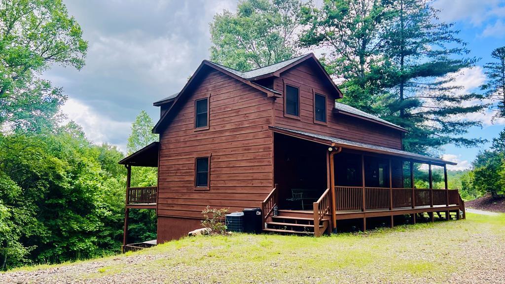 Do you want a lot of parking, a wraparound deck, three bedrooms and three baths with a flex space and a loft, and the opportunity to see beautiful nature year-round, including stunning mountain views? Then this property is definitely for you! Step into your mountain oasis, where captivating landscapes and peaceful living blend seamlessly. This exquisite three-bedroom, three-and-a-half-bath home is more than just a place to live; it's a gateway to a lifestyle marked by comfort and celebration. Inside, you're welcomed by a magnificent fireplace that radiates warmth, perfectly accentuating the elegant wood interiors and creating a cozy atmosphere. The main level hosts the primary suite, ensuring convenience and privacy, while a well-placed washer and dryer add to the ease of daily life. Picture yourself savoring morning coffee on the spacious wraparound deck, serenaded by birdsong. With plenty of parking available, this home is perfect for hosting vibrant gatherings or intimate dinners. Enjoy entertaining on the expansive decks or relaxing in the covered patio's soothing jacuzzi—this property truly makes life enjoyable. Various outdoor spaces invite you to appreciate nature's beauty, providing the ultimate backdrop for both relaxation and celebration. Head upstairs to discover a flexible loft area, ideal for a home office, art studio, or playroom. Each floor features generously sized bedrooms, each with its own full bathroom, ensuring comfort and privacy for everyone. With a bedroom on the main level, another upstairs, and one in the basement, there's ample space for family and friends. Conveniently located just minutes from Blairsville, Young Harris, and Murphy, this mountain retreat perfectly balances tranquility and accessibility. Don't miss the chance to own this peaceful haven—your dream home is waiting! Furniture is negotiable.