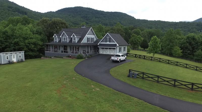 Listed below current appraisal. 4 bedroom, 3.5 bath farmhouse-style home on 7+ acres with mountain views with 2 car garage and large metal barn. Remodeled in 2021. Open floor plan with hardwood flooring that includes an office, half bath, living room with wood-burning fireplace, dining room, kitchen and pantry. Main bedroom suite has access to the front deck, complete with a hot tub. The en-suite bathroom features heated tile floors, a sliding barn door, a custom double vanity, a tile shower, and a spacious walk-in closet.The newly built expansive back deck with stairs down to a fully fenced backyard, a fire pit area (2024), a greenhouse, and a lower level single garage and workshop.Upstairs there are three bedrooms and bath. The finished basement features laminate flooring throughout. Includes a home theater room, a workout room, and bathroom. New HVAC unit (2021) and hot water heater (2023). Showings are by appointment only