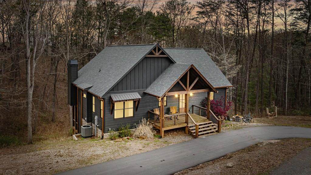 Welcome to your dream mountain retreat! This beautifully appointed 5-bedroom, 3-bathroom modern rustic cabin is being sold fully furnished and is currently part of a short-term rental program, offering an excellent opportunity for both personal enjoyment and investment income. Located in the scenic and sought-after Blue Ridge area, this cabin combines luxury and comfort with natural charm. The open-concept great room and kitchen feature cathedral ceilings, a wall of windows for natural light, modern appliances, and stone fireplace—perfect for gathering with family and friends. The spacious layout includes two indoor stone fireplaces, generously sized bedrooms, and a mix of wood and sheetrock throughout. The lower level offers additional space to entertain with a wet bar, pool table, and stylish stained concrete flooring. Step outside to enjoy the expansive deck spaces, complete with a cozy outdoor fireplace, hot tub, and plenty of room to relax and take in the wooded views. Additional highlights include: Fully furnished, turnkey sale, all paved access roads, EV charging station, modern rustic finishes and convenient to downtown Blue Ridge, wineries, hiking, Mercier Orchards and Lake Blue Ridge Whether you're looking for a luxurious personal getaway, an income-generating rental, or both—this Blue Ridge cabin is the perfect mountain escape.