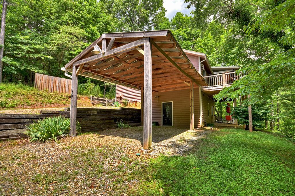Creekside Mountain Retreat - Enjoy privacy & seclusion tucked away in the peaceful North Georgia mountains conveniently located centrally between Blue Ridge & Blairsville, GA w/ easy no steep road access. This charming cottage features 3BR, 2.5 BA offering the perfect blend of comfort, privacy, & natural beauty. Enjoy serene cascading creek frontage right in your own backyard, complete with a creekside deck pavilion — ideal for relaxing, entertaining, or just soaking in the sights and sounds of nature. Large screened in porch and deck span across back of home overlooking the creek below. Primary BR on main level w/ open living, kitchen & dining room w/ half bath. Full finished terrace level features 2 additional BR's + flex 3rd BR/bunk room/bonus room w/ REC Rm/Den all opening onto the terrace level outdoor living space. Designed for outdoor living this offers many options including a screened-in back porch, covered porch, open deck, terrace patio & creekside pavilion. What more could you want? Whether you're cozying up inside or enjoying a cup of coffee outside, you'll feel right at home in this peaceful mountain setting. Interior finishes offer the perfect blend of drywall & wood with rustic accents. Floor to ceiling stone FP in great room w/ gas logs, vaulted ceilings & lots of windows adds to the warmth of the great room. Custom rustic style kitchen cabinetry w/ custom backsplash & stainless steel appliances make this an inviting place for those who know their way around the kitchen. Exterior features metal roof, attached covered carport w/ lots of additional parking on main & terrace level, large level/usable fenced in yard great for the kids or your furry friends, beautiful hardwoods & native flora & more. Convenient to shopping, dining, area attractions & recreational activities. Nestled on this beautiful 1.15 beautiful wooded acre lot. May be purchased turnkey fully furnished.