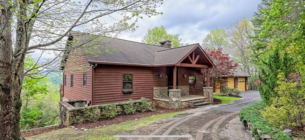 This Craftsman-style home has a beautiful long range mountain view including Brasstown Bald , the highest point in Georgia. Main floor is open concept design. The living / dining room has rocked stone masonry gas/ wood burning fireplace and a tongue and groove ceiling. The kitchen has stainless appliances, gas stove ,custom cherry cabinets and oversized island with granite counter tops. The master bedroom opens to a deck with same amazing mountain view. The large tiled ensuite contains soaking tub, separate shower, double sinks and a walk-in closet. The sunny loft could be used as fourth bedroom or office. There is a two car garage attached to house by covered breezeway and flower garden. Lower level has another stone fireplace in the family / entertainment room and a kitchen with bar seating. This room is large enough for activity areas for TV watching, a pool table or exercise equipment. There are two bedrooms with full a bathroom between . The screen porch on this level has mountain and wooded views. Above the garage is an area wired with electricity and could be used for storage or as a workshop. Most furniture can be included if buyer desires and custom made dining table was designed specifically for this home by local artisan.