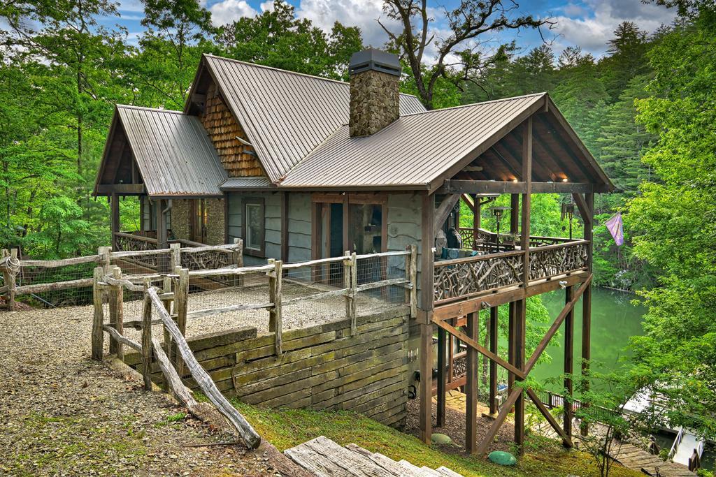 ~Luxury living on Lake Blue Ridge~ This lakeside retreat was a masterpiece built by Keith Sumner Homes as you will see the custom features & quality craftsmanship throughout. Featuring 4BR's + flex 5th Br, 4.5 BA's & is privately nestled on 2 lake lots with a combined acreage of 0.72 along the pristine shores of Lake Blue Ridge. Being offered fully furnished, this is the perfect home or home away from home on deep year-round water & all USFS protected land across the cove as your view offering ultimate privacy. From the moment you step inside you'll feel the warmth of spaces in every room offering inviting modern rustic interior design using all natural building material elements. Open concept floor plan w/ primary BR/BA ensuite on main level + two lower terrace levels featuring 3+ BR's & Rec Rm/Den on each lower-level incl. an additional stone fireplace w/ gas logs + 3 levels of decks/porches offering great entertaining spaces w/ plenty of room to roam. Soaring cathedral ceilings throughout & lots of fixed glass windows allowing you to take in the lake view from virtually every room & allowing for lots of natural light. Rough sewn wood interior w/ custom trim work & accents, stone walk in showers, custom cabinetry, custom lighting, mountain laurel pickets & railings on porches & more. Outside, enjoy multiple gathering spaces designed for relaxation & entertaining including the large “party porch” w/ outdoor Fireplace & rolling barn doors that opens up the entire porch. Walking paths around the property & to lake and boat dock make it easy living – Sun deck overlooking the lake w/ fire pit & outdoor living area offer a great place to relax. Huge natural boulders add to the amazing lakeside beauty. 1-story, one slip floating dock included w/ this property incl. a boat power lift & double wave runner ports. This mountain lodge is a rare find offering a seamless blend of both luxury & tranquility. Seller will contribute $25,000 to Buyers closing costs.