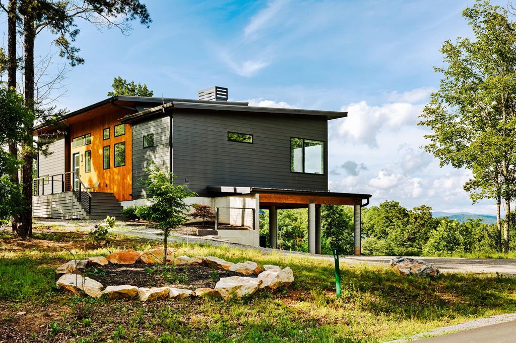 Pre-construction Wren floor plan on newly released lot at The Nest at Brannon Ridge. This modern masterpiece has 2 bedrooms, each with their full bathroom, plus a half bath. Large great room with deck for easy entertaining. This and other floor plans are available for customization.