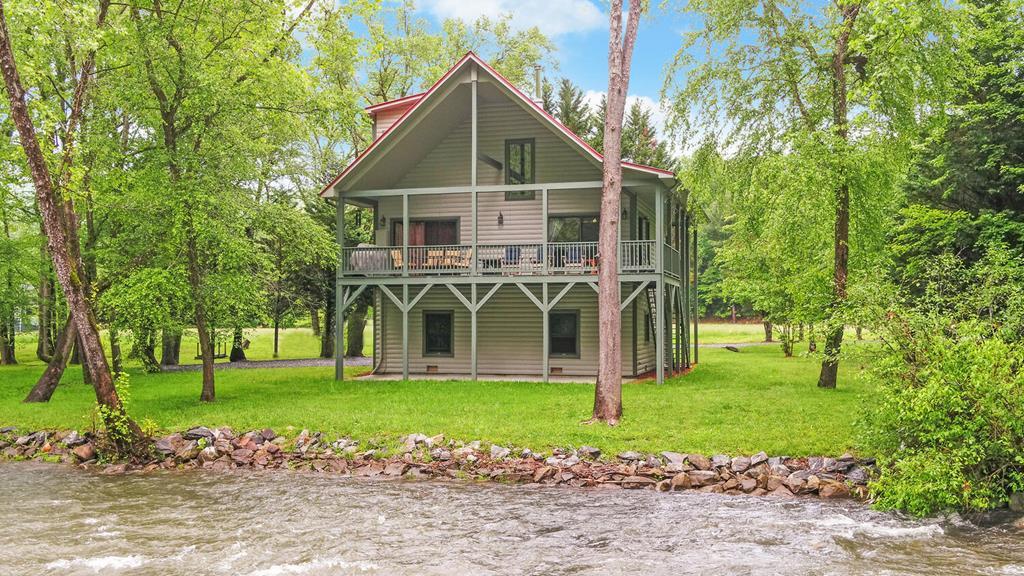 If you've been dreaming of a riverfront retreat that blends rustic charm with modern comfort, this log cabin delivers. Set on 1.18 acres just steps from the Hiwassee River, the home offers direct access to fishing, kayaking, and tubing right from your backyard. Inside, the all-wood interior features soaring cathedral ceilings, a cozy fireplace, and a wood-burning stove, creating a warm, inviting atmosphere. The kitchen boasts granite countertops, a central island, and unique stained-glass accents, while the dining area includes built-in seating for family gatherings. A loft adds flexible space, and the main-level laundry and walk-in closets enhance convenience. Throughout the home, antique stained glass adds character and timeless beauty, casting colorful light across the rich wood interior. The sale includes high-end furnishings, curated wall art, and dcor, offering a turnkey experience that blends luxury with rustic charm. Enjoy morning coffee on the enclosed porch overlooking the river or unwind on the deck with the sound of rushing water just steps away. With a single attached carport and ample storage, this cabin is both practical and picturesque. Located near Fires Creek Recreation Area, waterfalls, hiking trails, and the vibrant local scene of Hayesville, this property is a perfect blend of nature and community.