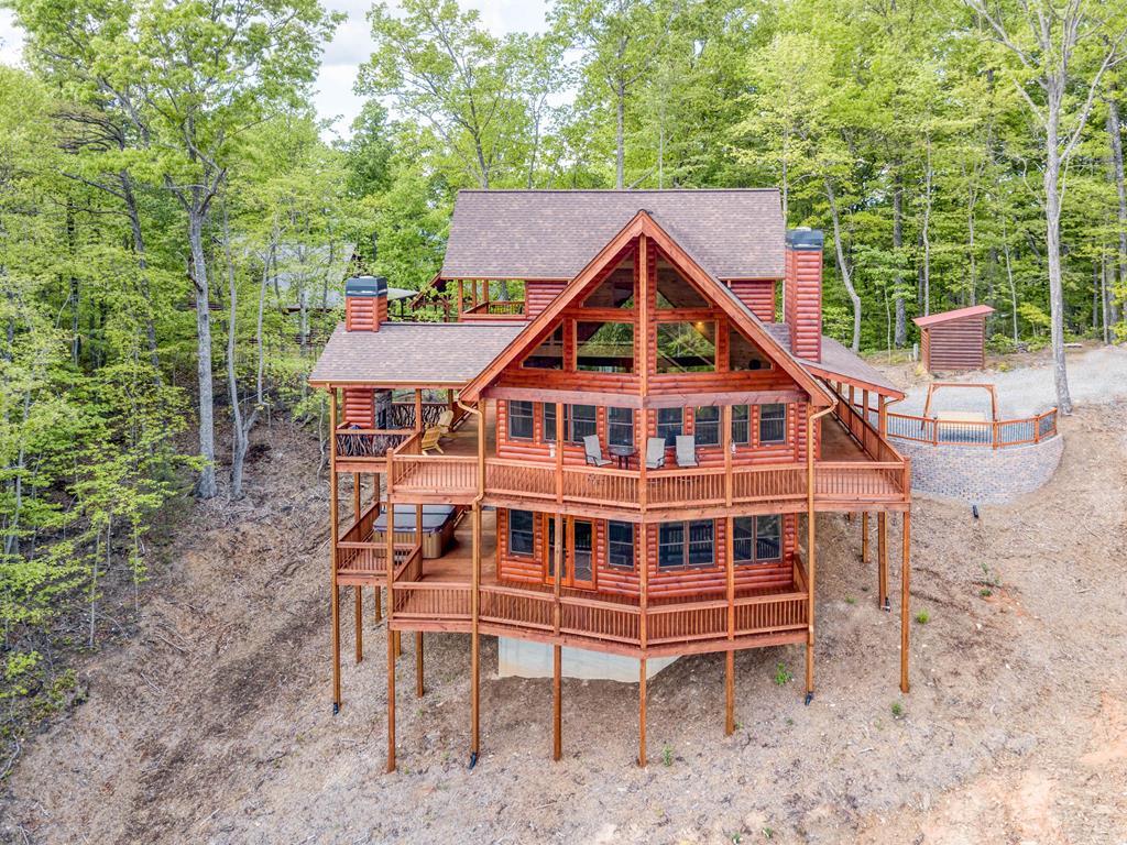 Welcome to Stanley Ridge – A Mountain Retreat with Year-Round Views. Tucked away at the end of the road in the desirable Stanley Ridge community, this beautiful mountain home offers breathtaking, year-round views of Dave's Road Valley and the surrounding mountains. Designed with both comfort and style in mind, this prow front cabin features a spacious wrap-around porch, perfect for relaxing or entertaining while enjoying the stunning scenery. Step outside the dining area to find a wood-burning outdoor fireplace, ideal for cozy evenings under the stars. Inside, the great room is flooded with natural light, thanks to floor-to-ceiling windows that frame the valley views. The living area offers ample seating, making it the perfect place to unwind with family and friends. The custom kitchen is a standout, with one-of-a-kind Poplar Bark cabinetry that adds rustic charm and character. A large dining room provides plenty of space for gatherings and holiday meals. With 3 bedrooms and 3 full bathrooms, this home has room for everyone. The main level bedroom is generously sized, offering space for multiple sleeping configurations. The master suite upstairs features its own private, covered balcony, where you can start your mornings with a cup of coffee and a view. The finished basement adds even more living space, complete with a gas fireplace, expansive windows, and a recreation area perfect for a game of pool or movie night. Whether you're looking for a full-time residence, vacation getaway, or a turnkey short-term rental, this home is thoughtfully designed and move-in ready. Don't miss this opportunity to own a piece of mountain paradise. Call today to schedule your private tour!