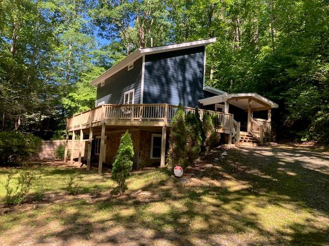 HUGE PRICE REDUCTION!!! MORGANTON CREEKFRONT 4 bedroom, 3 bath on a level one acre lot with a creek. This unrestricted property is centrally located in between Blue Ridge and Blairsville with all good, paved road access and a nice country road to the house. No mountains to climb! There is plenty of open deck space and a covered porch which takes you into the living room/kitchen area and from there 2 bedrooms and a bath. Taking stairs up to the Master bedroom and bath and a private balcony overlooking the front yard and creek. Down to the basement, you'll find a bedroom, bath and the laundry. It opens to the yard and to the creek. The owners will leave the furniture that is currently in the house. Some of the improvements the owners have made include adding a new deck, new exterior doors on both levels, new windows on the main and upper levels, new siding, new shower and vanity in the basement in the basement bathroom and new soaker tub in the master bath.