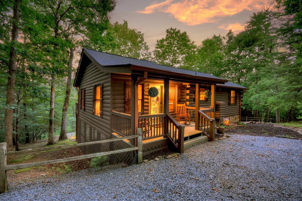 Imagine waking up to the tranquil beauty of your private mountain retreat, nestled amidst the breathtaking landscapes of North Georgia's Blue Ridge Mtns. This charming and meticulously maintained 3BR, 2BA log cabin is located within the Cherry Lake Community, offering more than just a home—it's an invitation to a lifestyle enriched with relaxation, outdoor adventure, and comfort. Whether you're seeking a peaceful sanctuary or an active vacation spot, this property delivers both. Step inside to find a warm and inviting interior highlighted by rich wood finishes and an open floor plan, The thoughtfully designed layout features an updated kitchen with elegant granite countertops, two ovens perfect for entertaining, and generous cabinetry for all your culinary needs. The large windows provide natural light, creating a cheerful, welcoming atmosphere. A versatile additional den provides space for guest accommodations, a home office, hobby area, or simply a cozy retreat for relaxing evenings. Outdoor living is truly exceptional here. Mornings can begin peacefully by the tranquil koi pond, embraced by the sounds of nature. The gently sloping corner lot offers an ideal setting for outdoor activities, gardening, or future property expansion. With a one-car garage and two additional driveways, parking is convenient and straightforward. This cabin has been thoughtfully upgraded and well maintained to ensure comfort and peace of mind. The roof was replaced in 2023, the exterior was recently repainted, and HVAC system was installed in 2020, providing reliable climate control. Additionally, a radon mitigation system has been added for safety, making this property a smart, low-maintenance investment suited for comfortable living year-round. The prime location places you just minutes from downtown Blue Ridge and Ellijay. Whether your passion is exploring scenic trails, enjoying water sports, or indulging in local events, you'll find endless opportunities right outside your door.