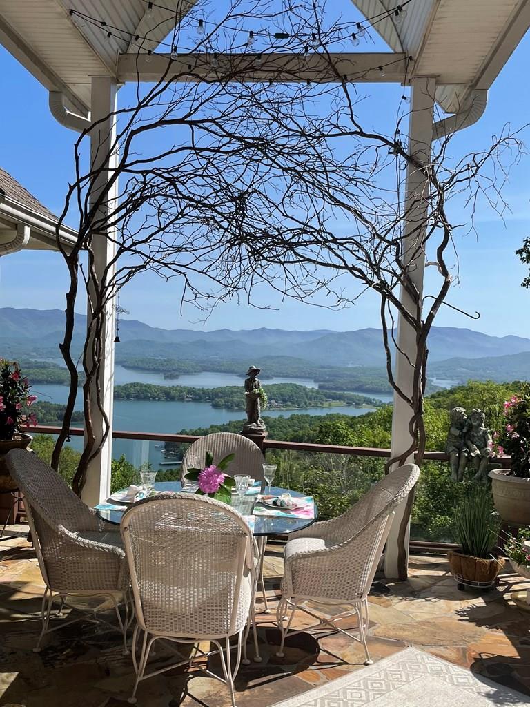 Experience The Beauty of the North Georgia and North Carolina Mountains with Panoramic View!, This Tuscan-Style Home offers 5 bedrooms and 3 bathrooms, featuring a huge kitchen with beautiful granite countertops, awesome stained glass windows, a bar/game room, great room w/stone fireplace, Brazilian cherry hardwood floor which adds a touch of elegance to the space. Plus Successful Rental History . Enjoy Stunning Views of the mountains and lake from the expansive deck which includes an attached screen porch with stone fireplace off the master bedroom. The home provides easy access to parking with a circular driveway in front and another driveway for convenient access to the downstairs entry, The downstairs area includes 2 bedrooms ,1 bathroom and an office. Perfect for guests or additional living. A spacious patio with stunning views and just 5 minutes to several restaurants , 15 minutes to Brasstown Valley Resort which includes golfing, horseback riding, hiking and wonderful dining experience. Recent renovations include Leaf Guard Gutters, new HVAC system, built in dehumidifier all less than 5 years old. A two car garage on main.