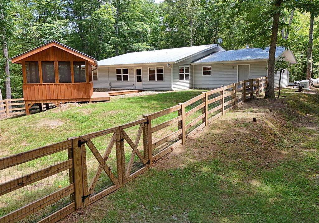 Beautifully updated and move-in ready home combines modern finishes with cozy, functional design—ideal for everyday living and effortless entertaining. Step inside to find luxury vinyl plank flooring throughout, fresh interior paint, stylish lighting, and updated bathroom fixtures that bring a contemporary, welcoming feel to every room. Key system upgrades offer lasting peace of mind, including a brand-new HVAC system, whole-house water filtration, whole-house generator, serviced well and septic, new hot water heater, and gutters with leaf guards. Designed with both comfort and accessibility in mind, this home features extra-wide doorways, open hallways, and level entryways for ease of movement. The inviting living room is anchored by a beautiful stone wood-burning fireplace, while the spacious parallel kitchen provides generous cabinetry, expansive counter space, and a massive walk-in pantry—perfect for storage and meal prep. A convenient laundry room is located just off the kitchen with level access. Enjoy seamless indoor-outdoor living with a bright sunroom that leads to a large, fenced backyard complete with a private screened gazebo and seasonal mountain views. The spacious master suite offers a true retreat with a Jacuzzi tub and an oversized, tiled walk-in shower. Outdoor amenities abound, including a charming covered rocking chair front porch, a powered outbuilding with a garage door, and a storm/root cellar with electricity—perfect for storage, workshop space, or emergency shelter. With ample parking, an attached garage, a detached garage/workshop, and plenty of room to roam, this property is ideal for outdoor enthusiasts, hobbyists, or anyone looking for versatile living. Minimal restrictions (no mobile homes, no pigs) offer flexibility while preserving the peaceful character of the neighborhood. Whether you're hosting gatherings, exploring the nearby woods on foot or ATV, or simply enjoying the views from your deck, this home offers the best of comfort, s