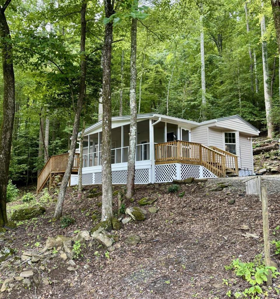 Updated 3BR/2BA home in a great Hiawassee location with seasonal long-range mountain views. Nearly everything is new—flooring, light/plumbing fixtures, vanities, cabinets, countertops, windows, paint, roof, and a 1-year-old water heater. Enjoy mountain air from a huge screened front porch, plus two additional porches for entertaining. Perched at the crest of a hill, this move-in ready home offers charm, comfort, and affordable mountain living.