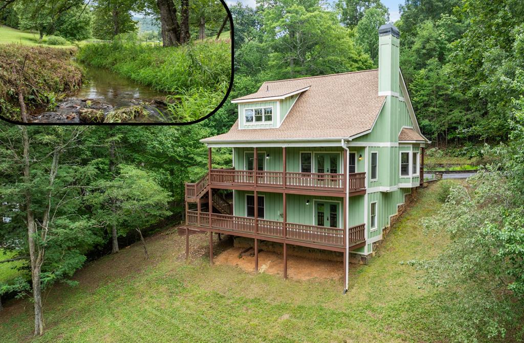 OWNER FINANCING POSSIBLE! Discover the perfect retreat in this stunning chalet, featuring a spacious kitchen adorned with quality cabinetry that combines functionality with elegance. The soaring wood ceilings create an inviting atmosphere, while the stone fireplace adds a touch of rustic charm, making it ideal for cozy gatherings. 2 generous bed and bathrooms with the primary bathroom featuring large tub and convenient access to washer and dryer. An unfinished basement waiting to be personalized to your exact needs. Nestled in a serene wooded subdivision, this 1.04 acre property is accessed easily with an asphalt drive and concrete parking. This land boasts picturesque creek that enhances the natural beauty of your wooded and private surroundings. OWNER FINANCING AVAILABLE! Conveniently located to Hiwassee GA and its amenities as well as its prime feature, Lake Chatuge. Also, convenient to Blairsville and Blue Ridge GA, Murphy NC, whitewater rafting, local vineyards and more!