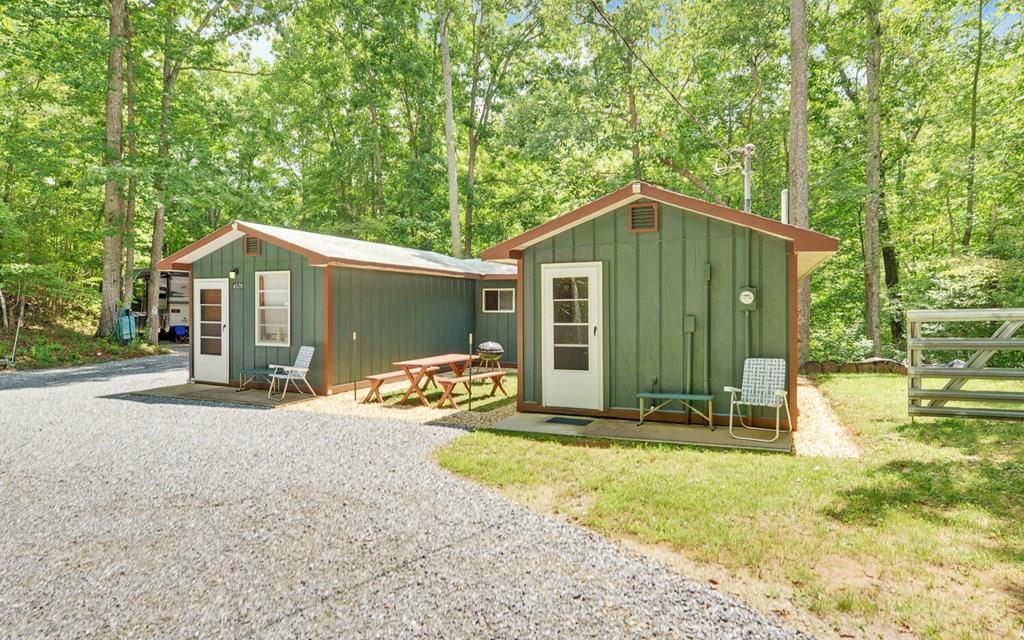 OWNER FINANCING POSSIBLE!!! UNIQUE BALD MOUNTAIN PARK CUTIE!! Rare find in this 1 bedroom/1 bath home along with a huge RV Port, all on1.6 acres AND a noisy branch borders the property at the bottom of the hill. The property is unrestricted with no HOA and the land is sub-dividable with room to add another RV port, tiny home, etc. The lot has a good circular drive that is easily accessible for any large truck and RV plus there are gates at each entrance. The house includes the open living/dining room, a galley kitchen and laundry room. The RV Port has its own water, electric and septic and is covered by a heavy duty galvanized metal RV Port. Surrounded by trees, the land is somewhat private and sits on a dead end road that makes it even more secluded. This would make a good income producing property whether you rent out the house or the RV Port or both or just have plenty of room for family or guests. There's plenty to do in the surrounding areas which include fishing and boating on Lake Chatuge, Hiawassee Beach, hiking on the Appalachian Trail, golf courses, pickleball, horseback riding, waterfalls, tubing, wineries, breweries, shopping for antiques just to name a few. Hiawassee is located in between Helen or Clayton and Young Harris and Blairsville. Cannot forget Hayesville, just across the border! Make time to see this one of a kind property! NOTE: RV is not included in the sale but is ready to connect yours.