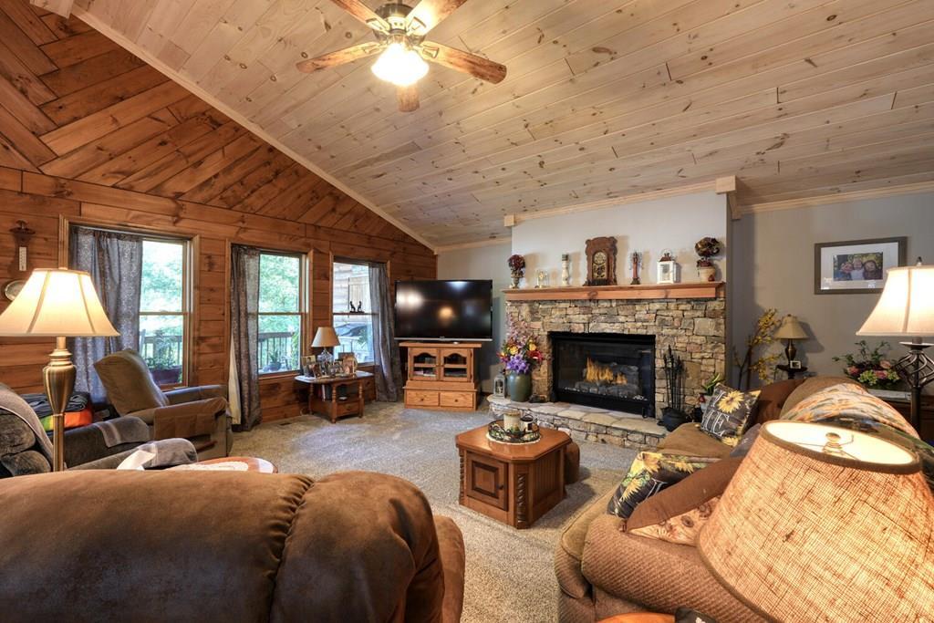 Owner Willing to Finance with 450k down at 5% with a 5 year Ballon. Secluded Custom Home with Exceptional Features! Tucked away on more than 6 private acres, this quality-built custom home offers both seclusion and convenience with easy access. All living spaces are thoughtfully located on the main floor, including an expansive master suite featuring a walk-in closet, double sinks, and a step-in shower. The living room boasts stunning wood cathedral ceilings and a rock gas log fireplace, creating a warm and inviting centerpiece. This 3-bedroom, 2-bath home includes a spacious dining room, a separate breakfast counter, and a substantial kitchen designed for both function and gathering. The main level also features a large laundry room with a connecting office space or combine the two for an oversized laundry area. Enjoy year-round outdoor living on the extra-large covered front porch with a grilling area. The property includes an attached 2-car garage with low-maintenance siding and yard. High-speed fiber-optic internet is available for work or streaming. Additional amenities include: Detached, oversized 2-car garage with half-bath and loft storage (finish into a guest suite, studio, or game room), Covered RV parking with electric hookup and septic access, Unfinished basement with potential for expansion, Asphalt driveway, fire pit, and lean-to wood storage. There is also plenty of room on the property to build 2 more homes for a family compound or potential income. With its blend of rustic charm, modern convenience, and quality craftsmanship, this home offers a rare combination of privacy and comfort.