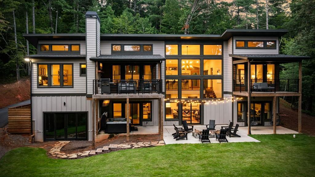 Custom mountain-modern home featuring an indoor heated pool, 5 bedrooms, 5.5 bathrooms, and 4,237 square feet of luxurious living space. This stunning property offers 3 king master suites (including two on the main level), a fourth bedroom with two full beds and ensuite bath, and a fifth bedroom with a full-over-full custom bunk and an XL twin-over-twin custom bunk, also with an ensuite bath. The modern kitchen boasts a breakfast bar and opens to a large dining area, while all bathrooms showcase beautiful custom tile work. Designed for comfort and entertaining, the home features 3 gas fireplaces plus an outdoor fire pit, two large covered decks, a top-of-the-line 6-person hot tub, multiple gathering areas, a downstairs bar, a game room with ping pong, and more. Enjoy a private hiking trail and community creek access with catch-and-release trout fishing in the desirable Watersong community, all just 10 minutes to downtown Ellijay and 25 minutes to Blue Ridge. All paved access! Outdoor enthusiasts will love the proximity to some of the best mountain biking trails in the Southeast, with Bear Creek and Pinhoti Trailheads only 4.6 miles away. Fiber internet! Fully furnished, turnkey, just bring your toothbrush!