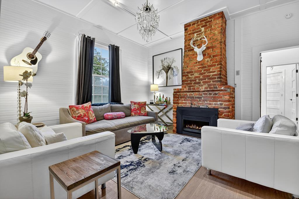 Step into this completely remodeled 2-bedroom, 1-bathroom bungalow where historic character meets modern comfort. Nestled in the heart of downtown Blue Ridge, this light, bright, and airy home is perfect as a full-time residence, mountain retreat, or investment property. The living room is warm and inviting with abundant natural light, beautiful ash gray hardwood floors, and the original early-1900s brick fireplace as a stunning focal point. The spacious master suite offers soaring ceilings and plenty of room to relax, while the bathroom features a large tiled shower and double vanity. Thoughtful details throughout include some original bead board walls and a custom-made door crafted from reclaimed timbers salvaged during the home's renovation, creating a one-of-a-kind blend of old and new. The chef's kitchen is designed for gathering, with stainless steel appliances, plentiful counter space, and an open flow into the living areas. Outside, enjoy the best of mountain-town living with a rocking chair front porch where you can wave to passersby along the Blue Ridge Scenic Railway, a covered back deck with hot tub for relaxing evenings, and a cozy fire pit area perfect for entertaining under the stars. Currently being used as a short-term rental, this property offers excellent investment potential, though showings may be limited on weekends due to guest stays. Blending timeless character with modern updates, this rare find is truly a Blue Ridge gem you won't want to miss.